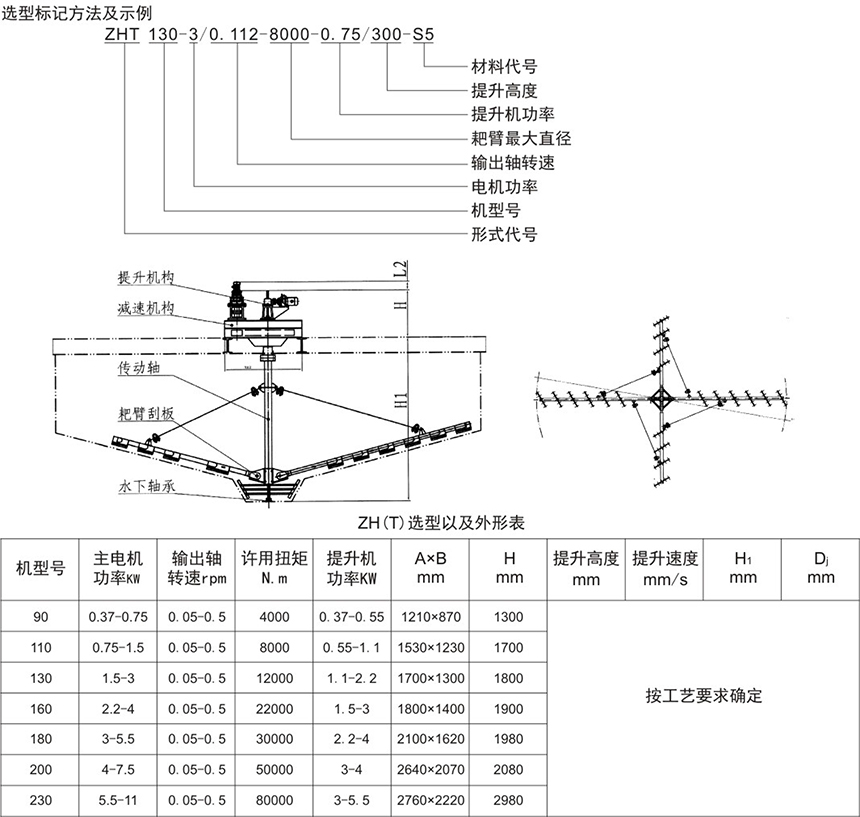 我公司可根據不同的行業和物料沉降要求,組合設計承載能力的減速機和耙臂直徑和攪拌軸的直徑以達到工藝和性能要求。